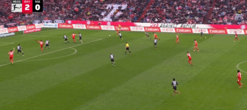 第16分钟,帕夫洛维奇抽射,桑托斯扑救失误,拜仁1-0法兰克福