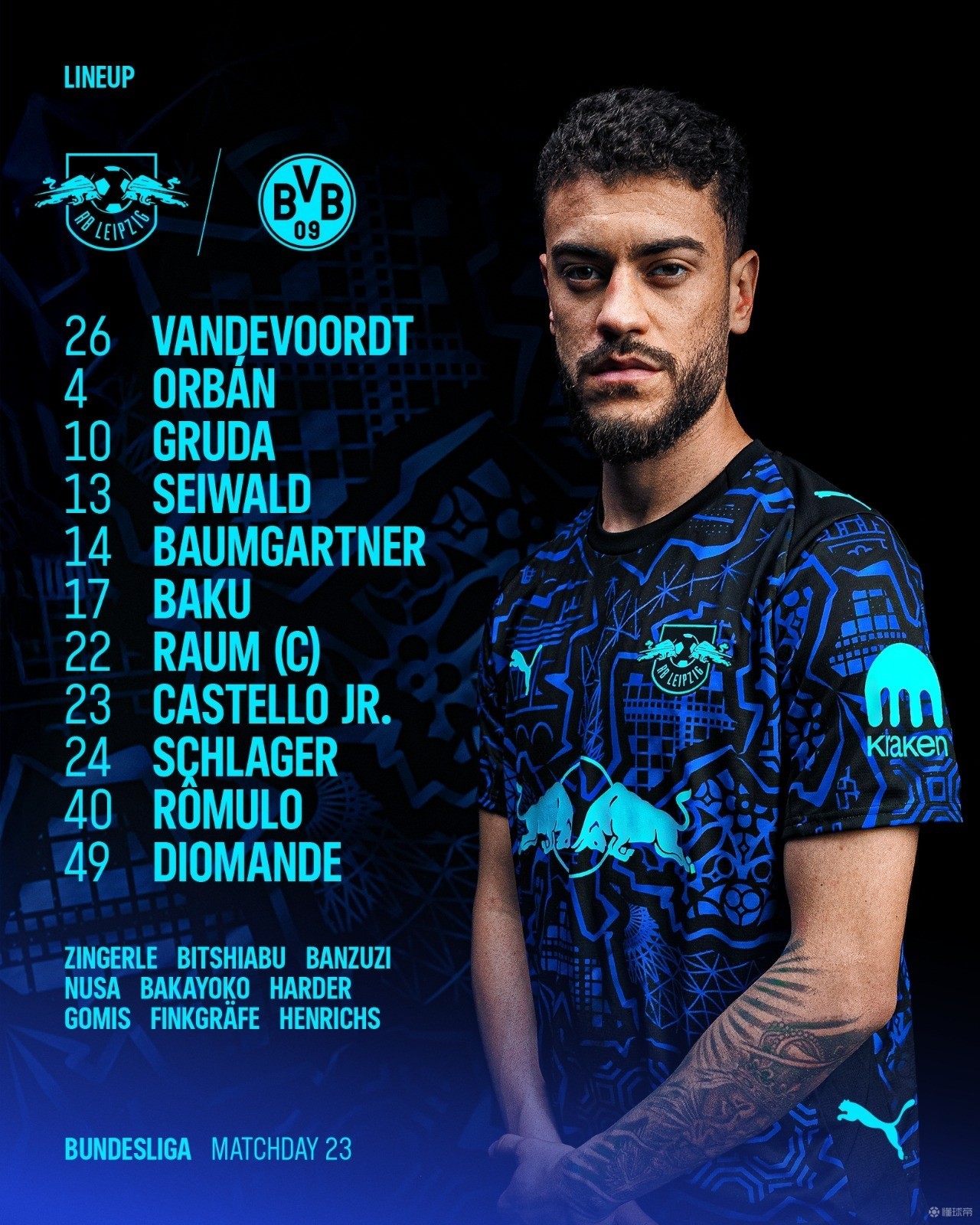 北京时间2月22日1:30,德甲第23轮,多特客战莱比锡。赛前首发公布。