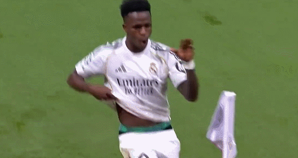 今晨欧冠附加赛次回合,回到伯纳乌球场维尼修斯攻入一球,再次在角旗区跳起舞蹈庆祝。
