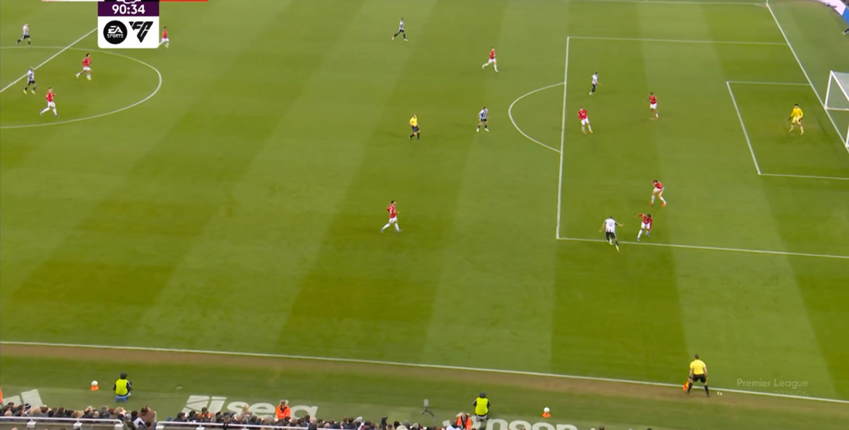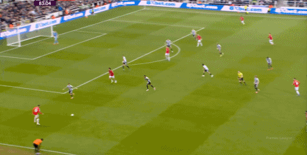 连续两场迎来人数上的优势,这本来是极为有利于曼联的发挥,库尼亚随后在特里皮尔身上更是再次打出明显优势,但被纽卡堵住: