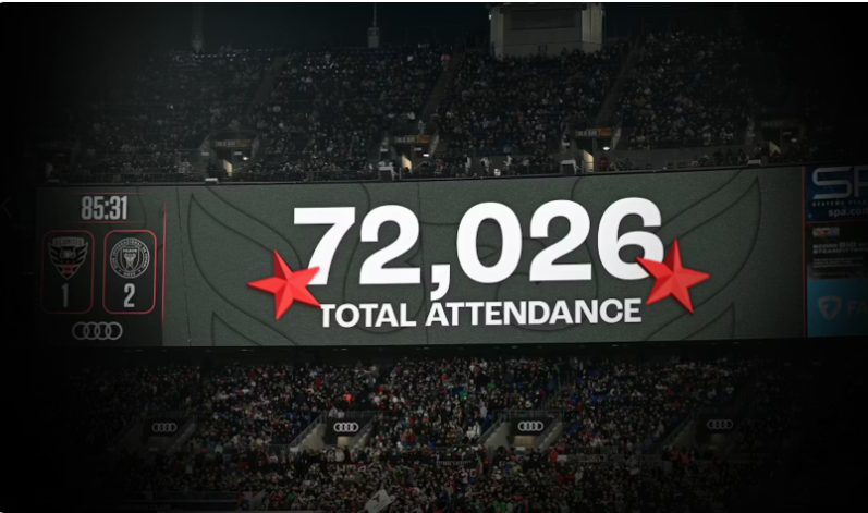 2024年晚些时候:迈阿密国际4-1大胜新英格兰革命的比赛移师吉列体育场(Gillette Stadium),吸引了65,612名观众,超越了该俱乐部此前 hosting 2002年MLS杯时创下的61,316人的主场纪录。