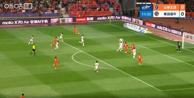 第13分钟,杨梓豪传中,克莱伯门前抢点得分,云南1-0领先海牛
