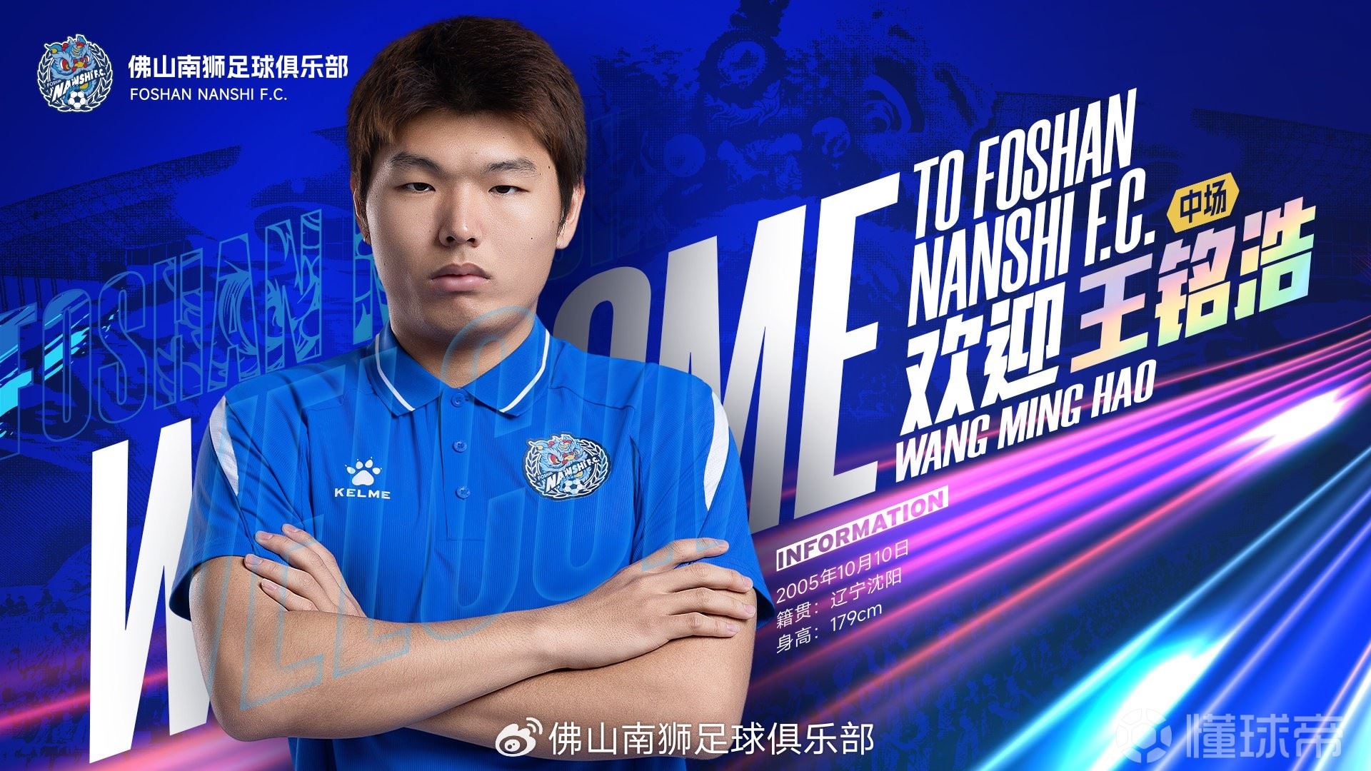 经与球员本人友好协商并达成一致,即日起,中场球员王铭浩正式加盟佛山南狮足球俱乐部。他将身披佛山南狮战袍,随队征战未来的各项赛事。