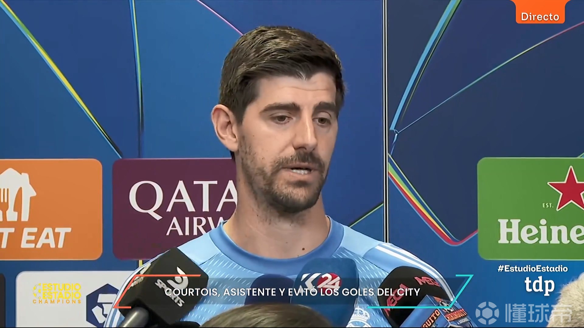 北京时间3月12日,在欧冠联赛1/8决赛首回合对阵曼城的比赛结束后,皇马门将库尔图瓦在混合采访区接受了媒体记者采访,复盘了球队在本场比赛中的表现。