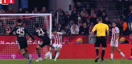 第45+5分钟,将功补过!奥利塞助攻格纳布里小角度破门,科隆1-1拜仁