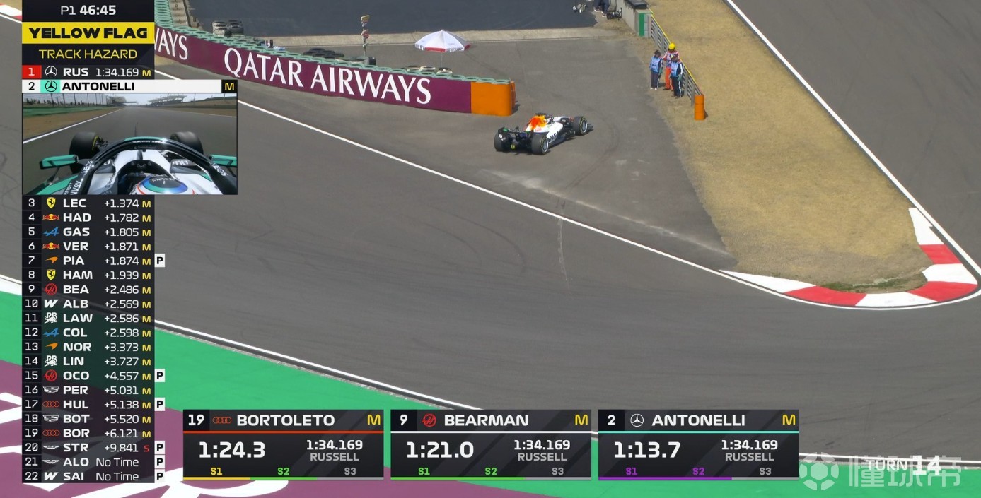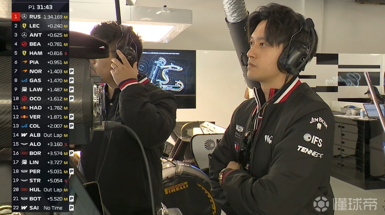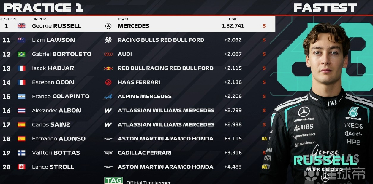 一练停表,拉塞尔全场最快,安东内利第二,诺里斯第三。