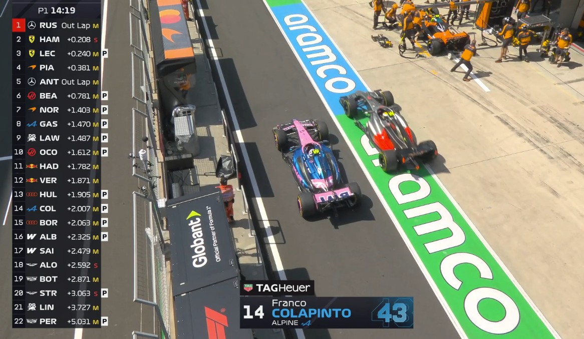 1-5:拉塞尔、安东内利、诺里斯、皮亚斯特里、勒克莱尔