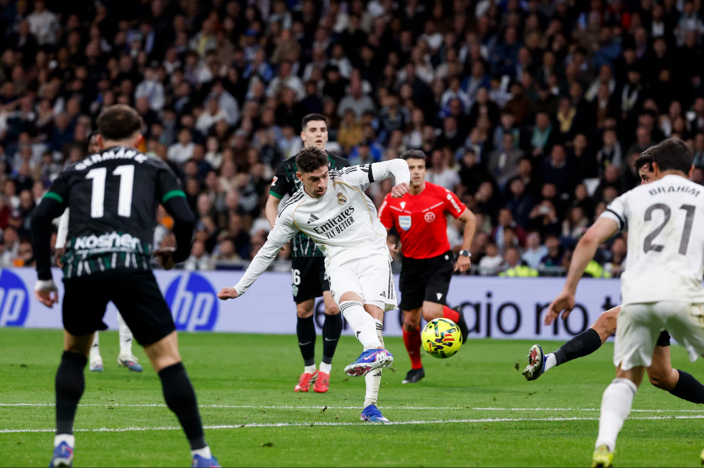 2025-26赛季西甲,皇马在伯纳乌球场大胜埃尔切,比赛最后时刻还诞生了一粒足以载入史册的进球。