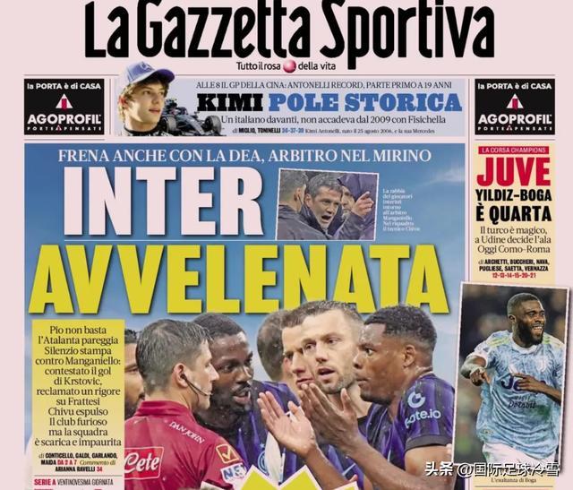 综上,国米在巴斯托尼风波、欧冠出局、德比落败后,又开始因为“蓝黑德比”的裁判风波,而全队赛后陷入“狂怒、激愤”的情绪中(否则齐沃也不至于把球员关在更衣室长达两个小时),球队陷入不大不小的危机。