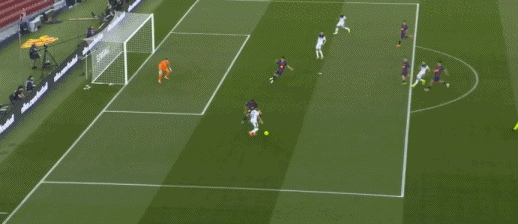 这个球其实是我们这种打法里比较常见的一种情况。对手从边路推进,然后把球传到门前。我需要很快移动过去,赶到射门球员的位置,然后尽量把自己的防守面积扩大,让对方感觉球门被封得很小。最后就是把球挡下来。这一球的话,我会给三点五个手套。