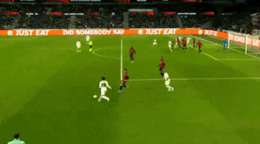 第29分钟,耶茨凌空打门,皮球击中横梁
