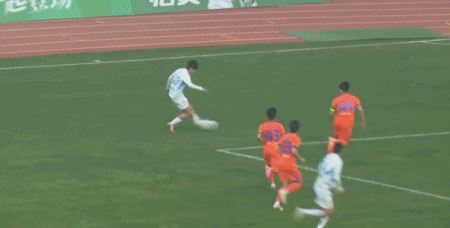 第20分钟,温钧翔轰出世界波完成双响,上海海港B队2-1上海赛更达
