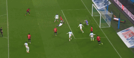 第87分钟,默尼耶助攻,吉鲁头球破门,马赛1-2里尔