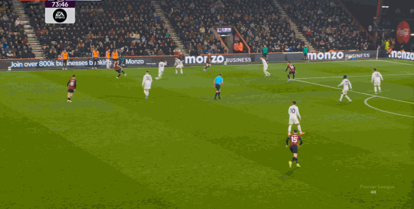 这个时候,曼联想要打出优势,就需要找其中还能勉力维持的点位,这个点位就是库尼亚,一方面他的确是比较全面,所以身体撑得住技术的基本发挥,另一方面就是他对位的伯恩茅斯右后卫阿莱士-希门尼斯比较弱,所以在这个一对一里,曼联可以打出优势,从而形成局势上的平衡,甚至是反超: