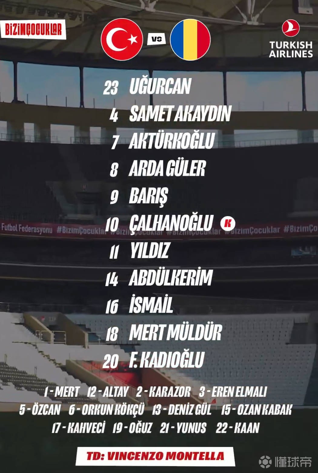 北京时间3月27日凌晨01:00,世界杯欧洲区预选赛附加赛半决赛首回合,土耳其将迎战罗马尼亚,赛前,双方的首发阵容已经公布。
