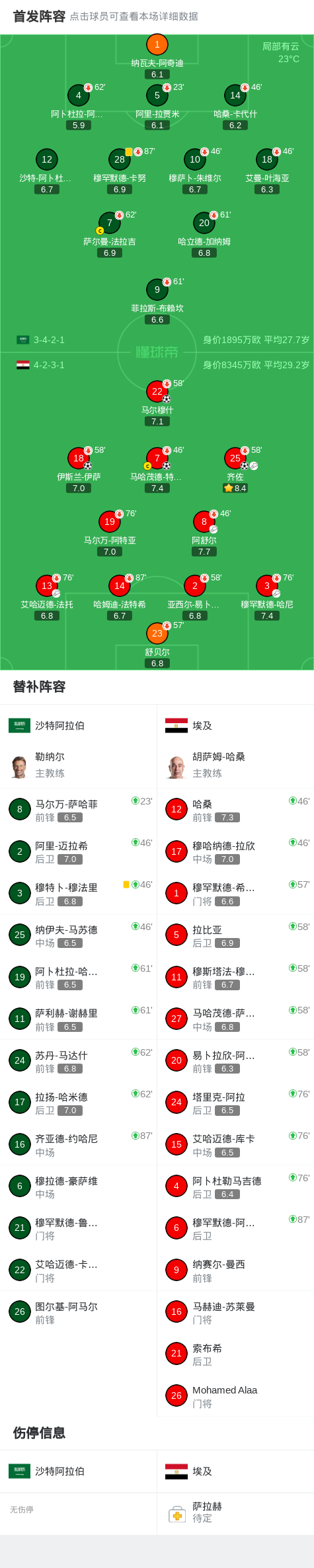 北京时间3月28日国际友谊赛,沙特阿拉伯对阵埃及。埃及伊斯兰-伊萨破门,马哈茂德-特雷泽盖破门,齐佐破门,马尔穆什破门。最终比分沙特阿拉伯 0-4 埃及。