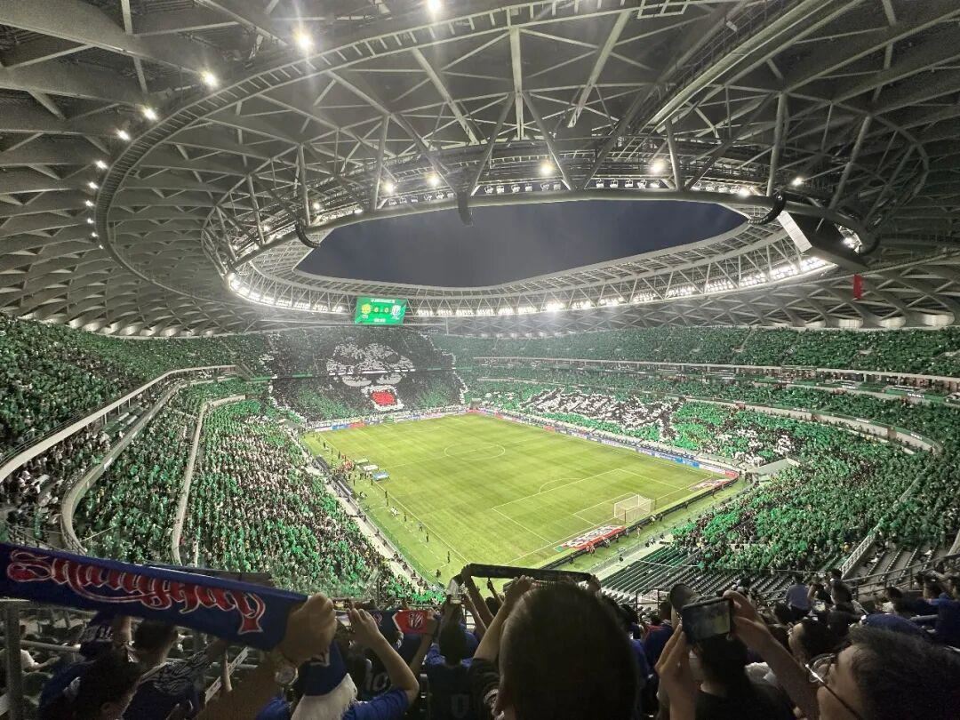 比赛开始的时候,气氛感觉与过往三年有些不同。之前三次来到这里,都有一个巨大又有创意的TIFO填满了目光——从那只张开嘴的狮子,到铺满三面球场的哪吒。