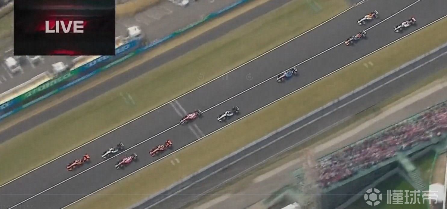 梅赛德斯起步不利跌至P4、P5,被两台迈凯伦和勒克莱尔超越,皮亚斯特里领先。