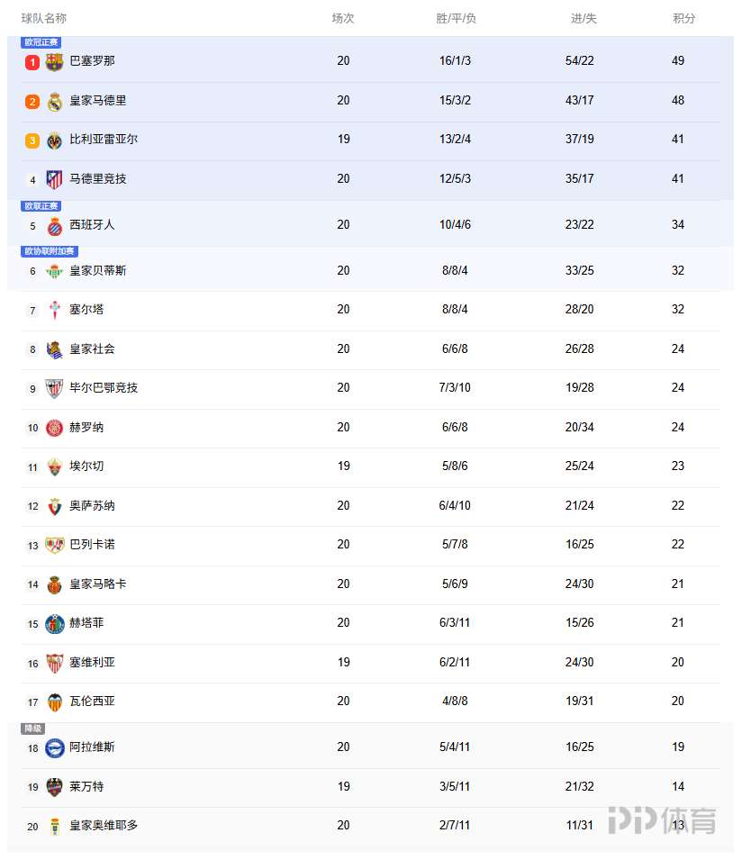 西甲第20轮,皇家社会主场2-1战胜巴塞罗那,终结后者西甲的9连胜。最新形式如下: