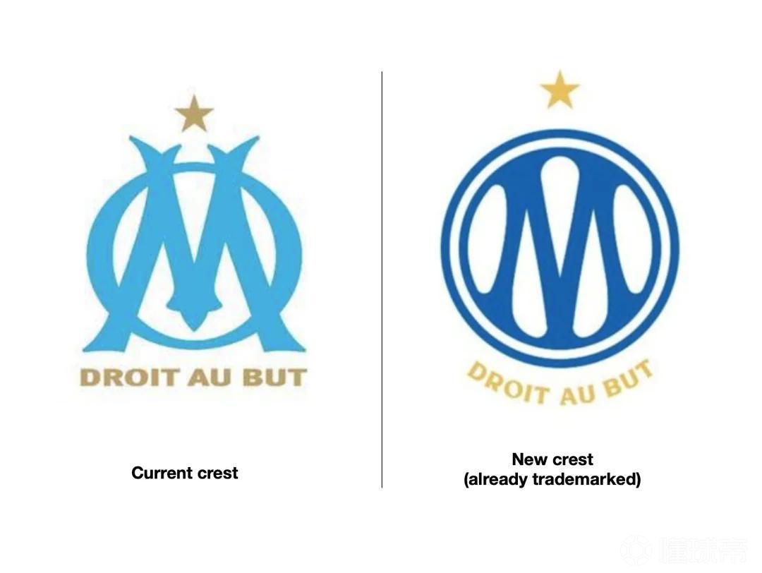 早在去年9月,就有网友在法国国家商标注册处里发现了这一新标志,它并非由马赛俱乐部注册,而是归属于一家位于马赛的公司。新队徽里依然保留了代表欧冠冠军的金色星星,底部“Droit au but”的口号也继续保留,但字母O和M现在连在一个圆圈里面了。