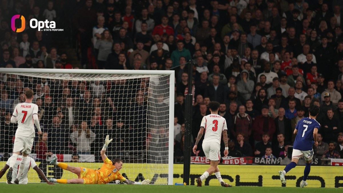 据统计,这是皮克福德自2024年10月(对阵希腊)以来首次在英格兰队比赛中被攻破球门,三笘薰的进球终结了他在三狮军团连续922分钟不失球的纪录。