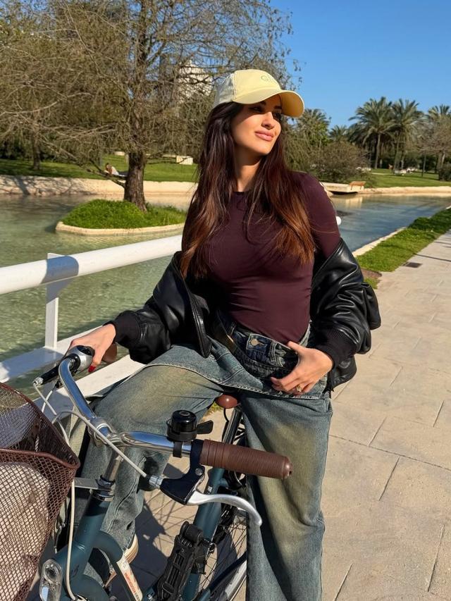 在第一张照片里,她先是发了一张美美的自拍,把帅气的AC米兰男友当成了甜蜜的背景板;而在第二张照片里,两人干脆一起快乐地骑起了自行车,画面简直不要太养眼。