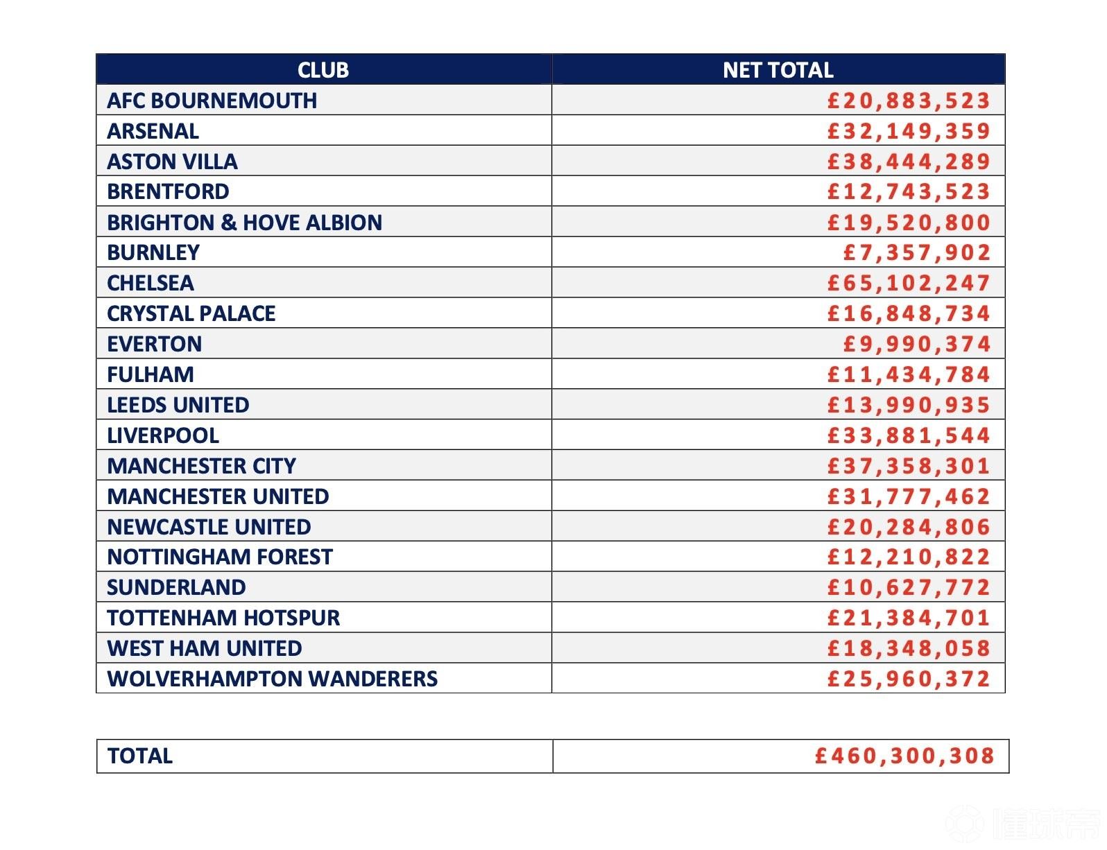 北京时间4月1日,来自英足总的最新数据显示,2025年2月至2026年2月英超俱乐部支付的经纪人佣金合计高达4.6亿英镑,其中切尔西在这方面的支出超过了6500万英镑,位列所有俱乐部的第一位。