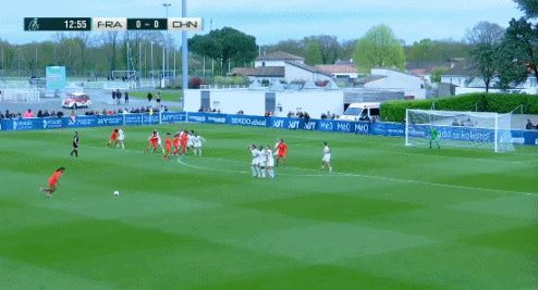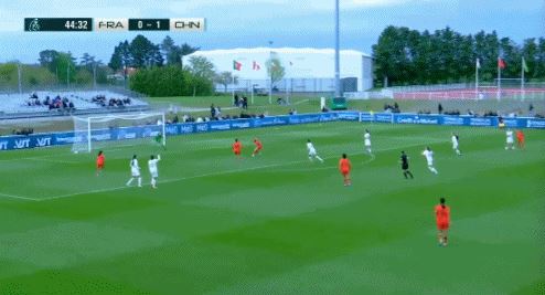 第15分钟,中国队获得前场任意球机会,周瑾彤主罚,皮球划出美妙弧线直挂球门死角,直接破门得分,中国女足U16 1-0领先法国女足U16
