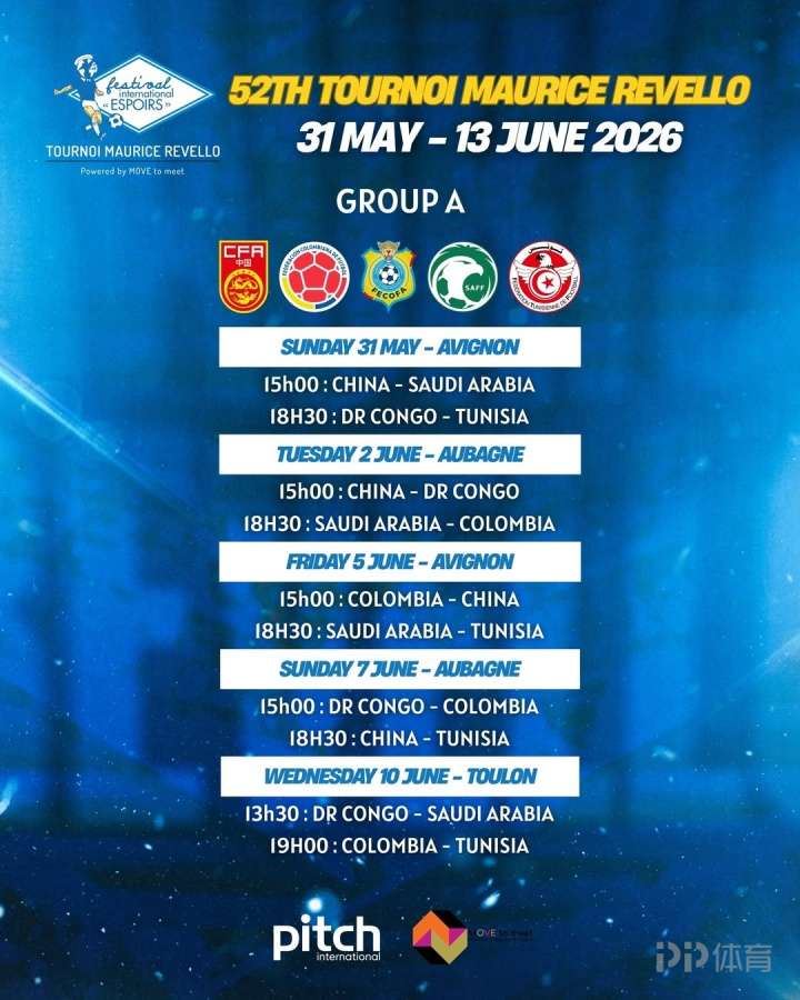 知名国际青少年赛事土伦杯官方公布了第25届法国土伦杯的参赛队与赛程,中国2007年龄段U19国青队与沙特、哥伦比亚、民主刚果和突尼斯队分至同组。