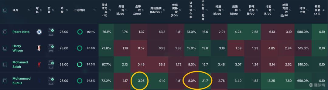 他是排名靠前的xT名单里,平均射门距离最远的球员之一,也是射门转化率最低的球员之一,库杜斯这赛季在热刺,爆点搅屎棍的效果发挥出来了,但是热刺的中锋和边中结合就拉了,库杜斯要是会传球,别老想着射门,那么热刺的进攻质量立马可以上一个台阶。