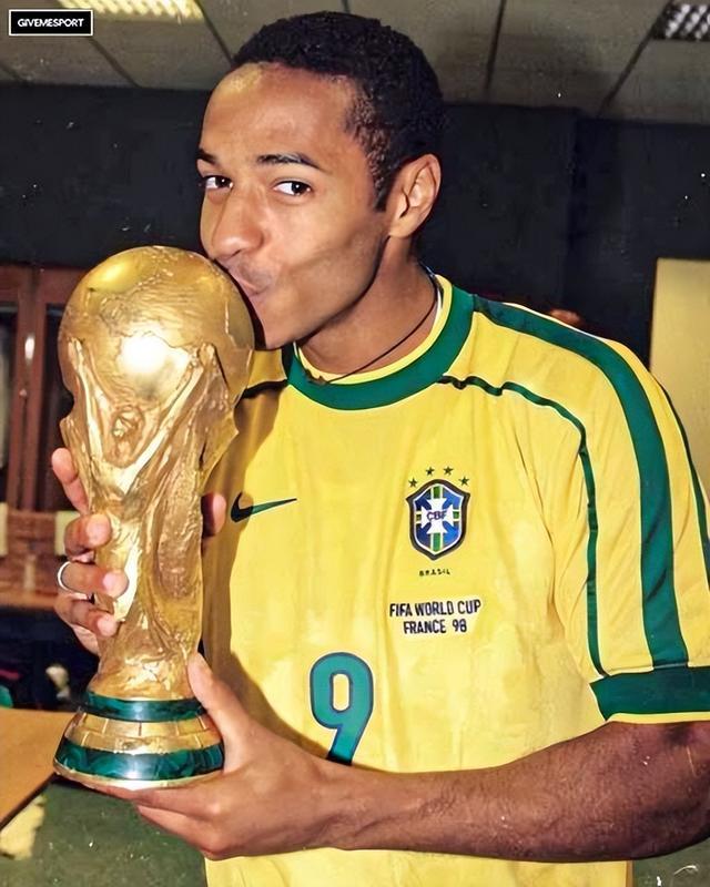 1998年法兰西之夏,高卢雄鸡在主场3-0把桑巴军团踢得没脾气,成功捧起大力神杯。但在赛后疯狂庆祝的抓拍中,有个小伙子的造型极其“违和”——20岁的法国小将亨利,正深情款款地亲吻着大力神杯,但他身上穿的,竟然是一件黄灿灿的巴西队9号球衣!