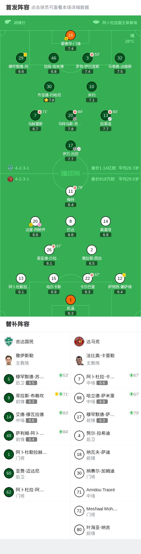 第56分钟,吉达国民球员伊万-托尼助攻马特乌斯-贡萨尔维斯打入一球。