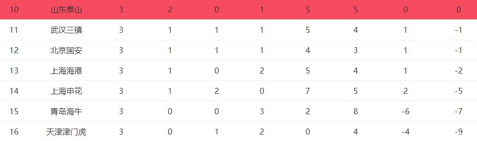 前面3轮中超战罢,上海申花先是在首轮5:3大胜大连英博,而后在第二轮和第三轮遭遇两场平局,目前减去-10,仅仅积-5分,负分尚未清零,仅仅排在中超积分榜的倒数第3位。而天津津门虎更惨,前面3轮中超战罢,他们仅仅1平2负,减去-10,目前才积-9分,妥妥坐稳中超副班长之位。