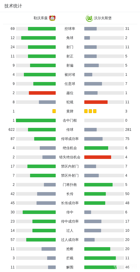 第31分钟,迅速回应,梅勒抽射得分,沃尔夫斯堡2-1