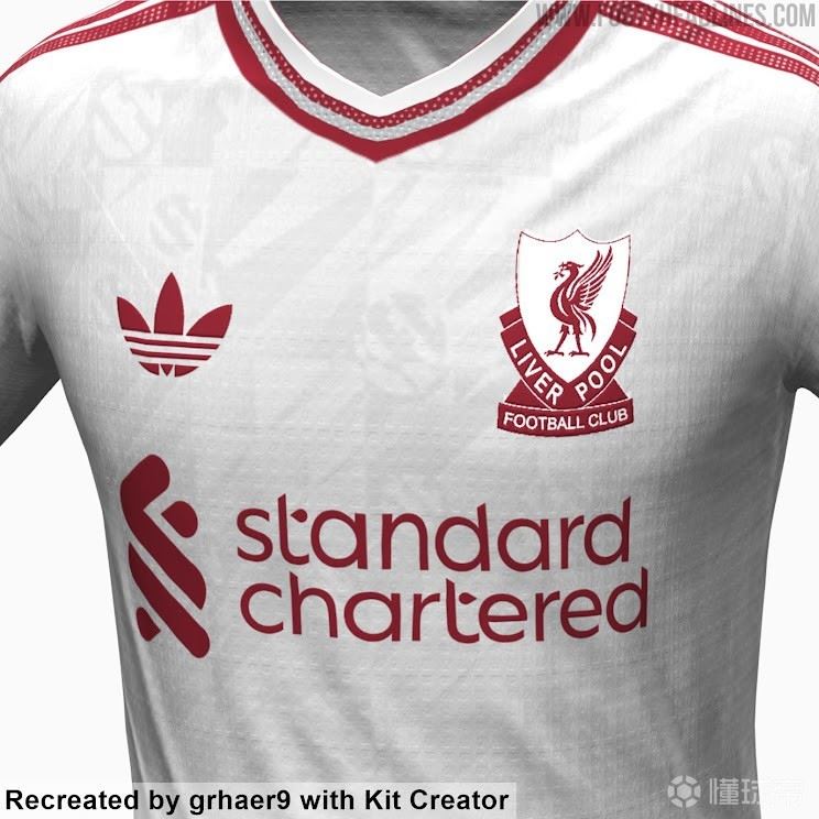 据悉,这款白色客场球衣是俱乐部自2023-24赛季以来首次回归纯白色设计(2025-26赛季客场球衣为略带米白色),搭配栗红色徽标,形成了利物浦客场球衣经典的对比效果。球衣的领口和袖口均采用白/红/灰条纹点缀,细节设计充满复古韵味。