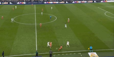 于是在第18分钟,在经历了对手的连续施压过后,在赫伊森和居莱尔的帮助下,皇马打出了他们想要的进攻,这是他们本场第一次反击,也是相对威胁较大的反击之一: