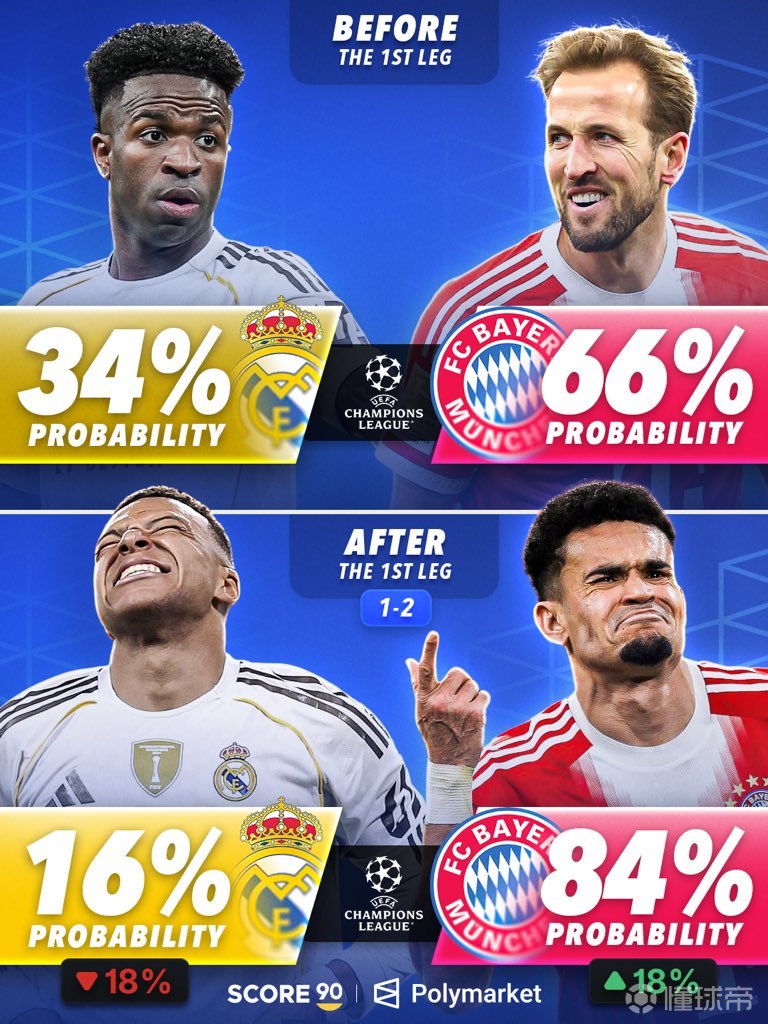 在首回合结束后,拜仁晋级半决赛的概率达到84%
