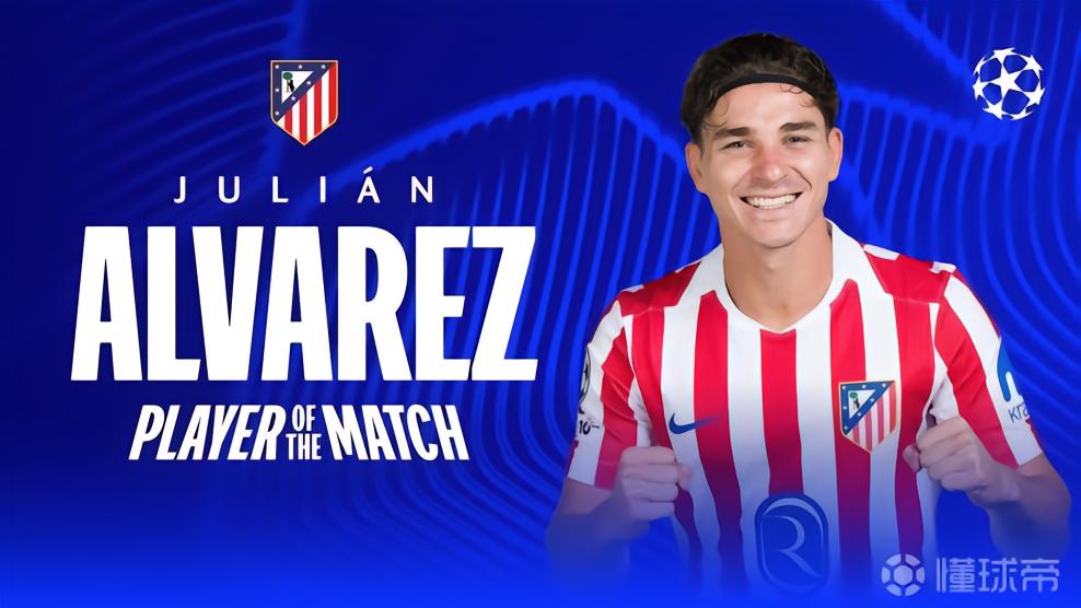 欧冠1/4决赛首回合,马德里竞技客场2-0击败巴塞罗那,此役打入直接任意球的阿尔瓦雷斯当选欧冠官方全场最佳球员。