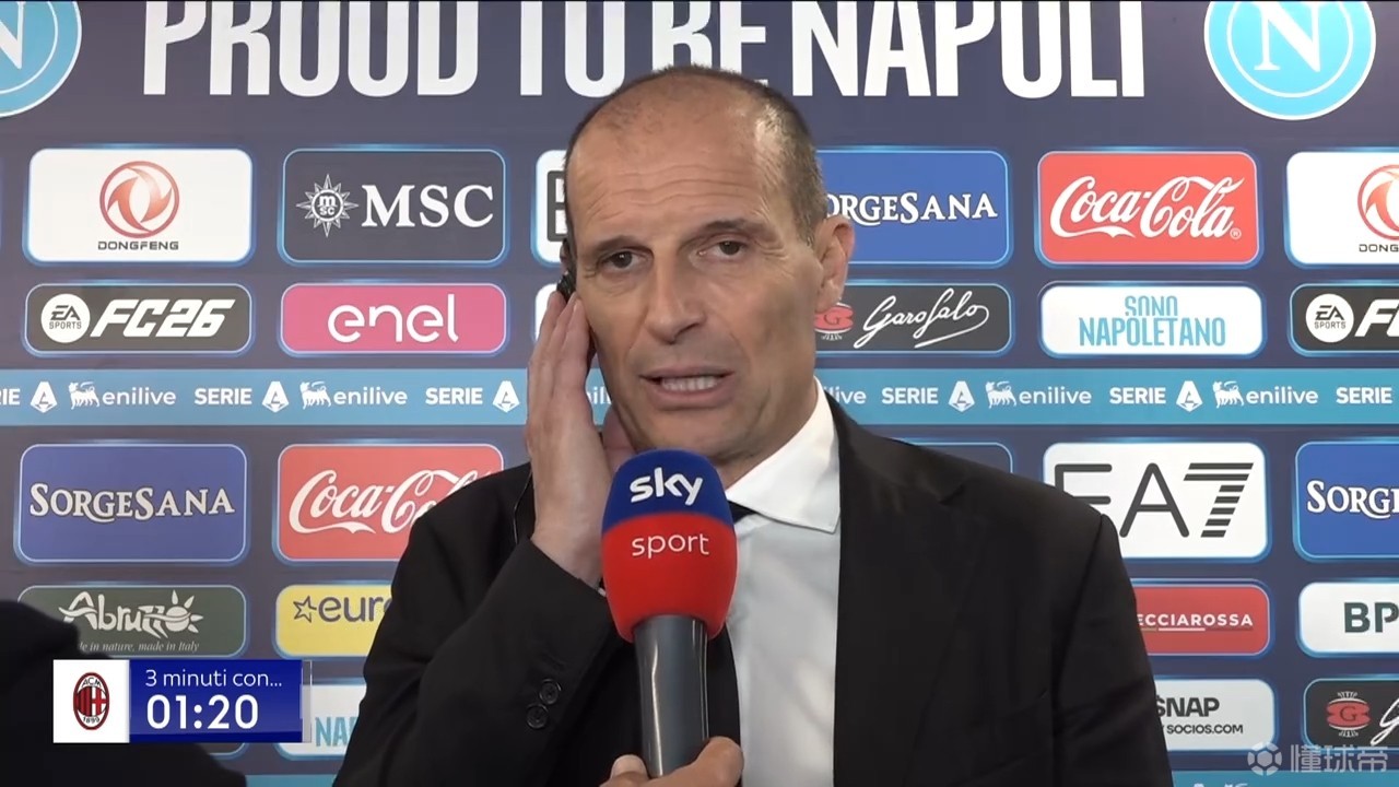 米兰在意甲第31轮客场0-1负于那不勒斯,主教练阿莱格里在赛后接受了意大利天空体育的采访。