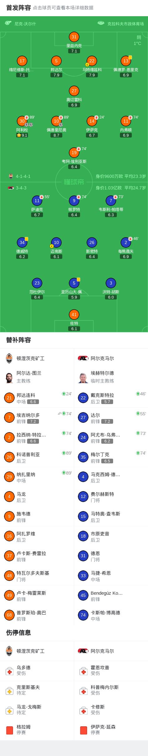 北京时间4月10日欧洲协会联赛 1/4决赛首回合,顿涅茨克矿工对阵阿尔克马尔。顿涅茨克矿工佩德里尼奥破门,阿利松梅开二度。最终比分顿涅茨克矿工 3-0 阿尔克马尔。