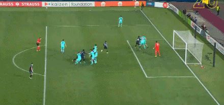 第21分钟,米兰达侧身凌空抽射,门将扑救建功