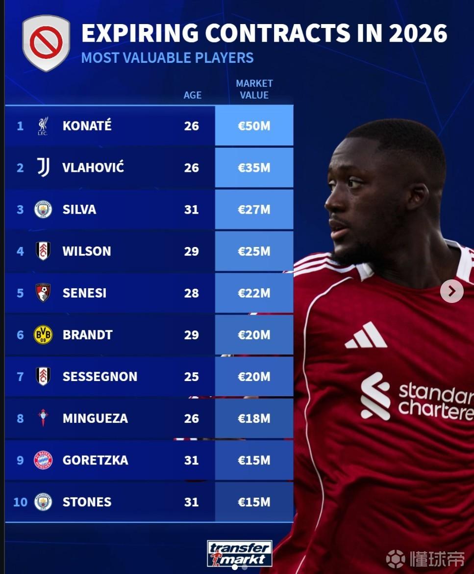 1. 科纳特(利物浦),26岁,5000万欧元