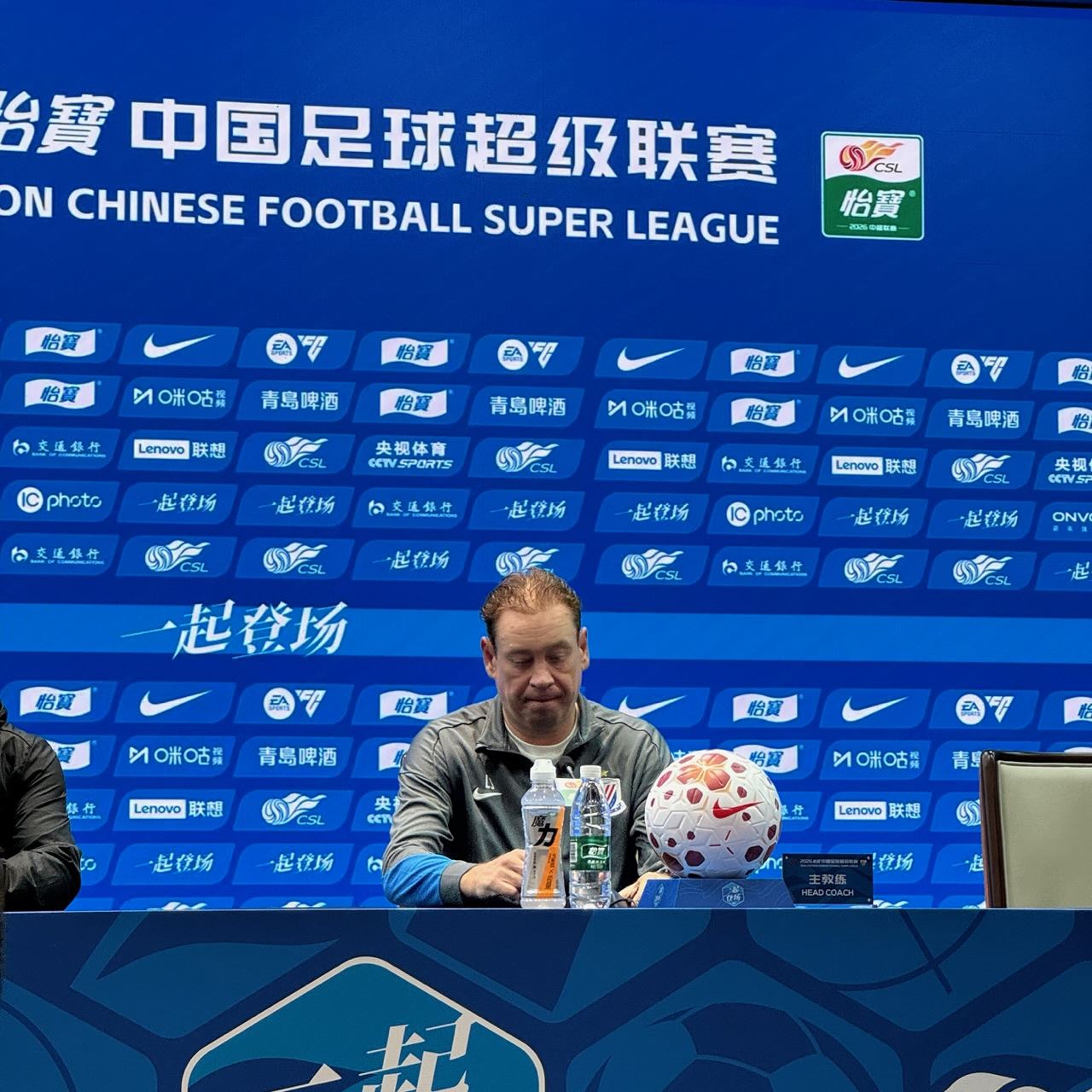4月10日下午,上海德比赛前新闻发布会在上海体育场召开。上海申花主帅斯卢茨基携队员特谢拉出席。