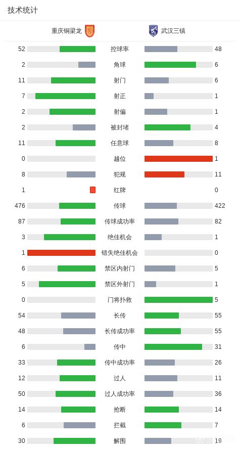 北京时间4月11日中国足球超级联赛第5轮,重庆铜梁龙主场对阵武汉三镇。重庆铜梁龙陈纯新、张志雄分别破门,杜月徵染红。卡迪斯扳回一城。最终比分重庆铜梁龙2-1武汉三镇。