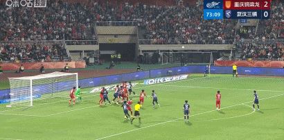 第74分钟,扳回一城,卡迪斯头球得分,三镇1-2铜梁龙