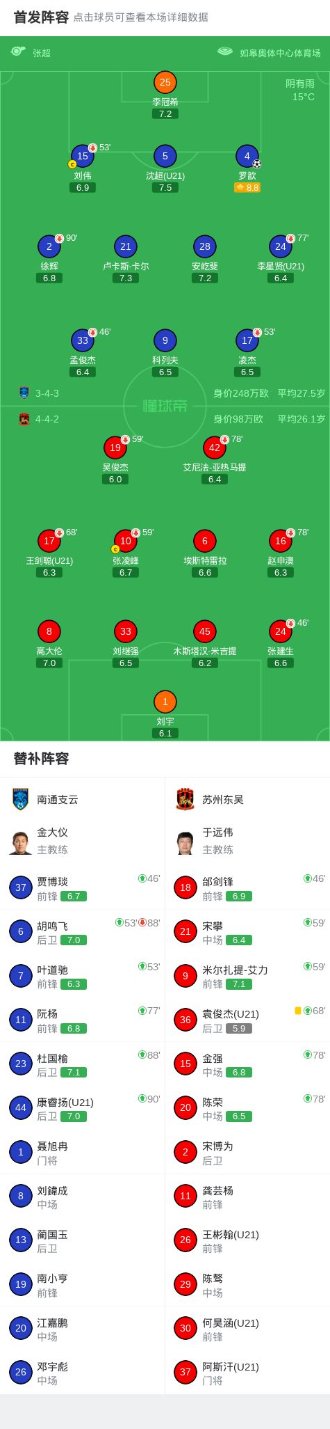 北京时间4月11日中国足球甲级联赛 联赛 第4轮,南通支云主场对阵苏州东吴。南通支云罗歆破门。最终比分南通支云 1-0 苏州东吴。