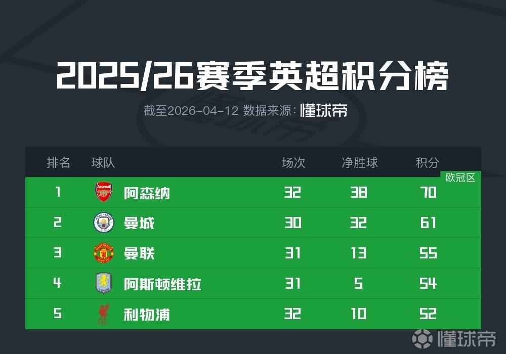 北京时间4月12日,今晚五大联赛与争冠有关的赛事已经全部结束,目前的形势可谓几家欢喜几家愁。