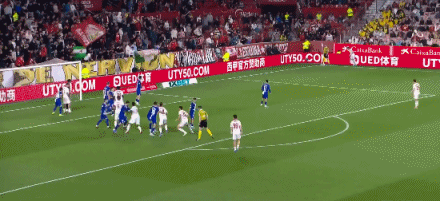 第35分钟,扳平比分!博尼亚尔头球冲顶破门,塞维利亚1-1马竞