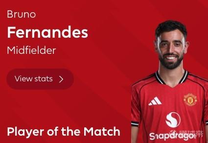英超第32轮,曼联主场1-2不敌利兹联,此役送出助攻的曼联队长布鲁诺-费尔南德斯当选全场最佳球员。