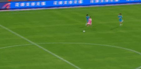 第14分钟,右路传中,杨天宇鱼跃头球未顶到,错失得分机会